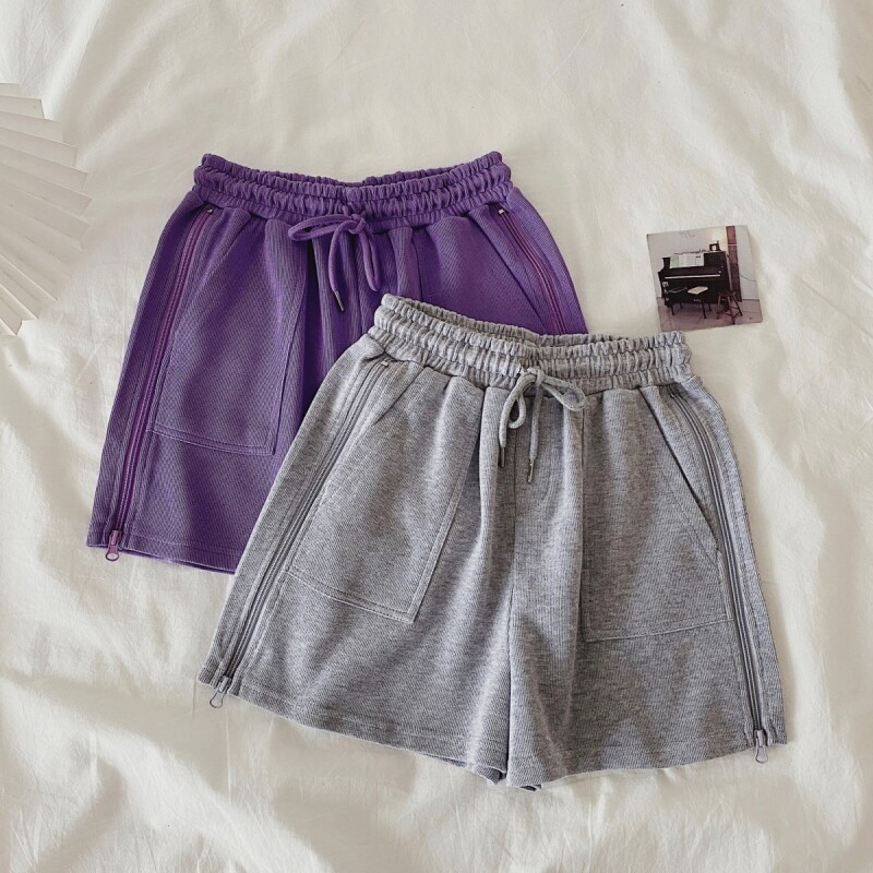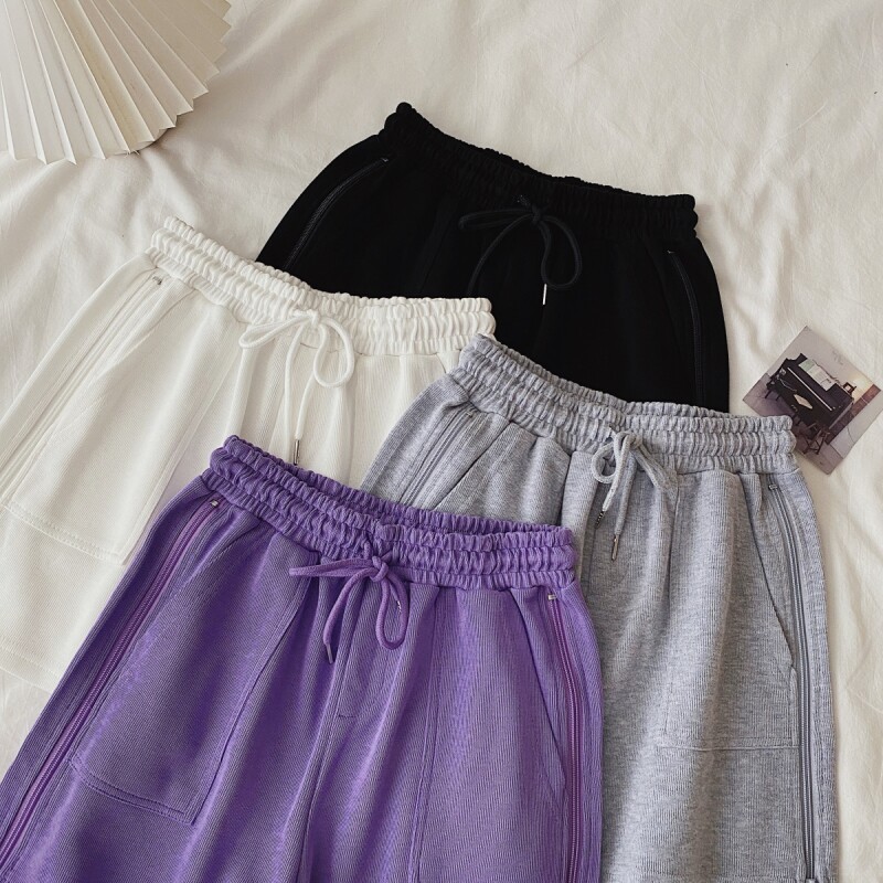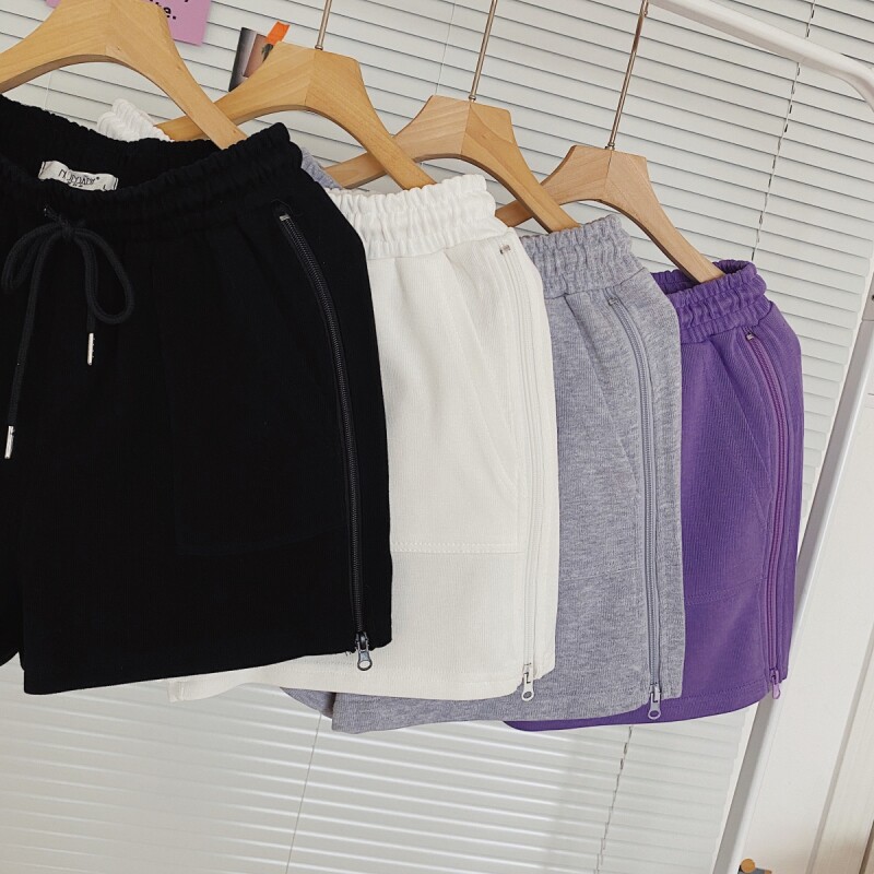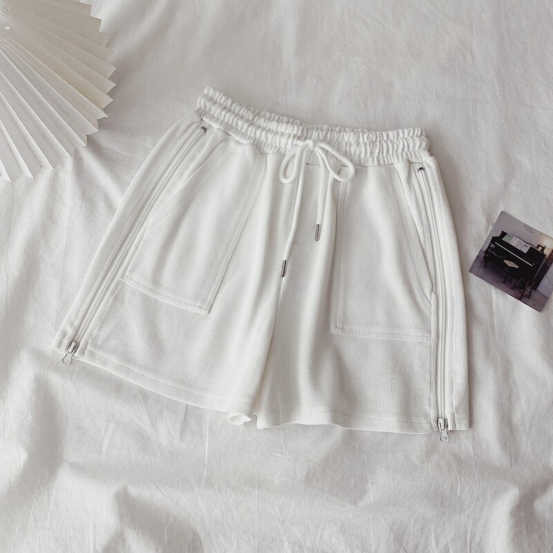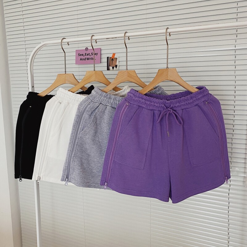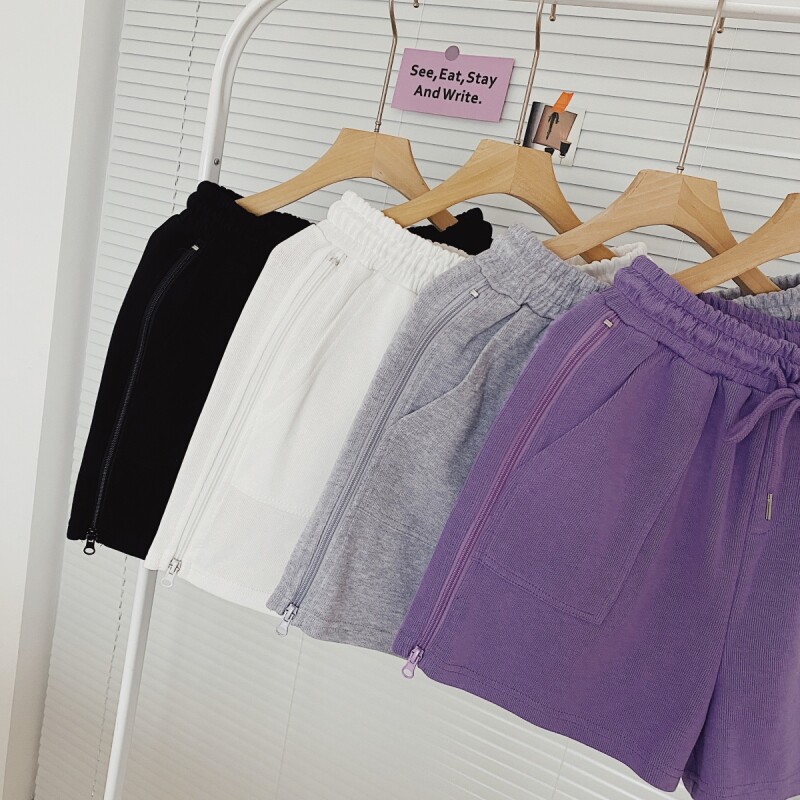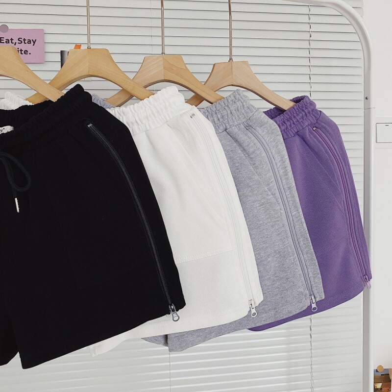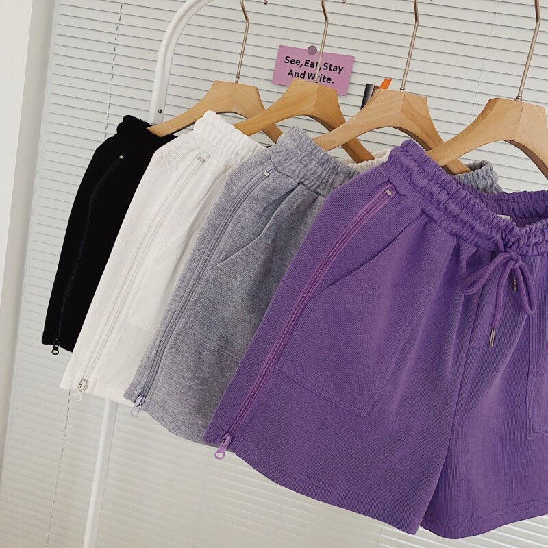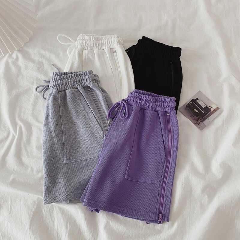 实拍现货 夏季新款韩版百搭短裤高腰运动裤哈伦裤拉链休闲裤女