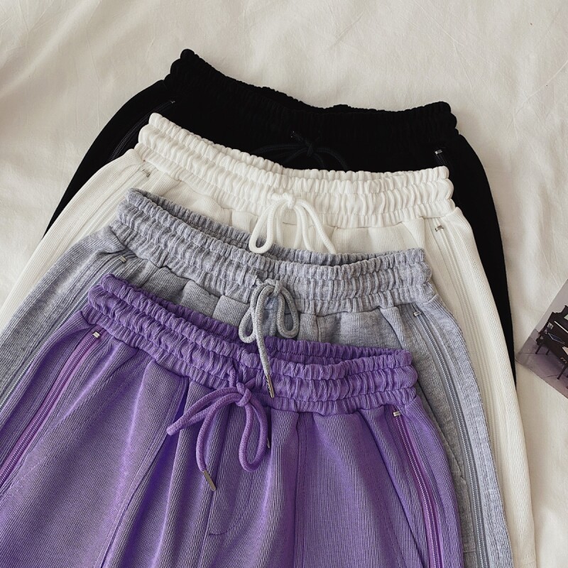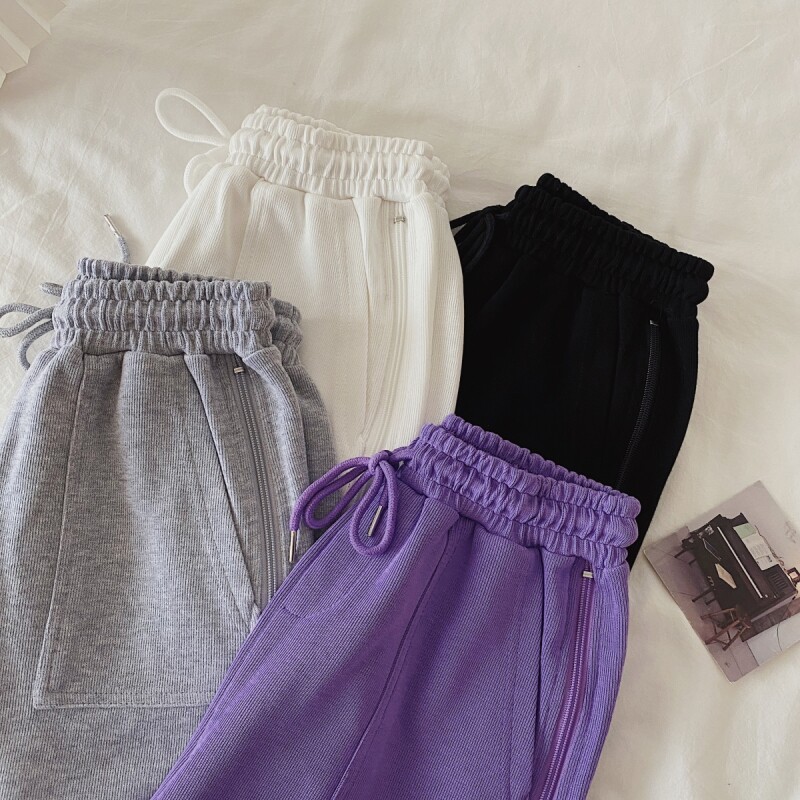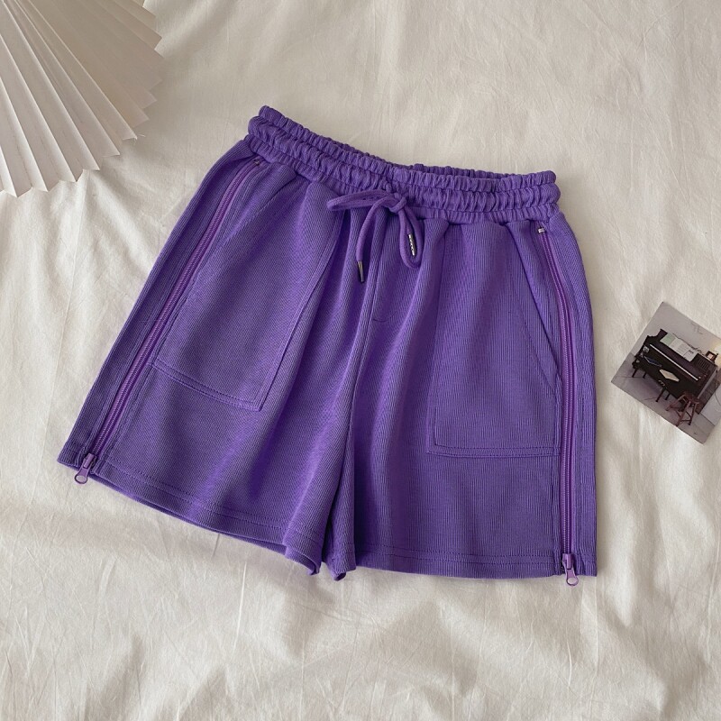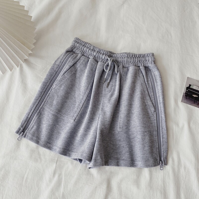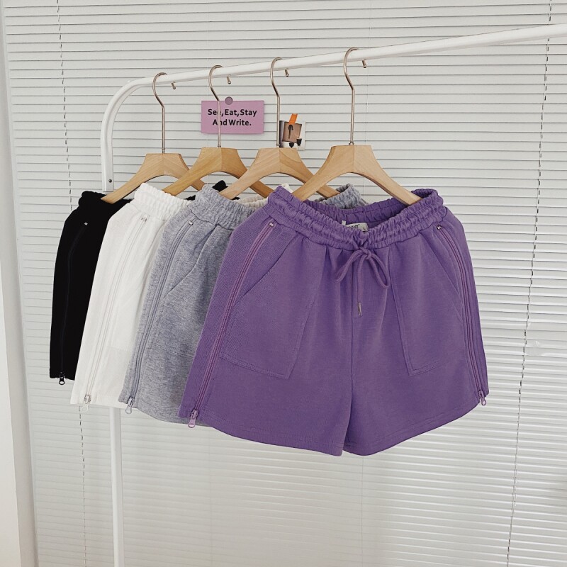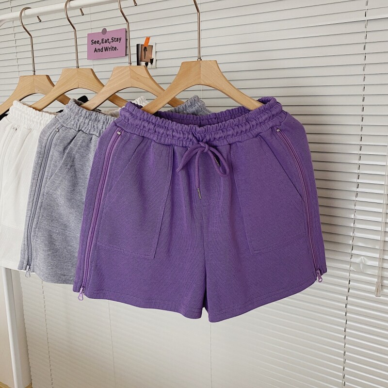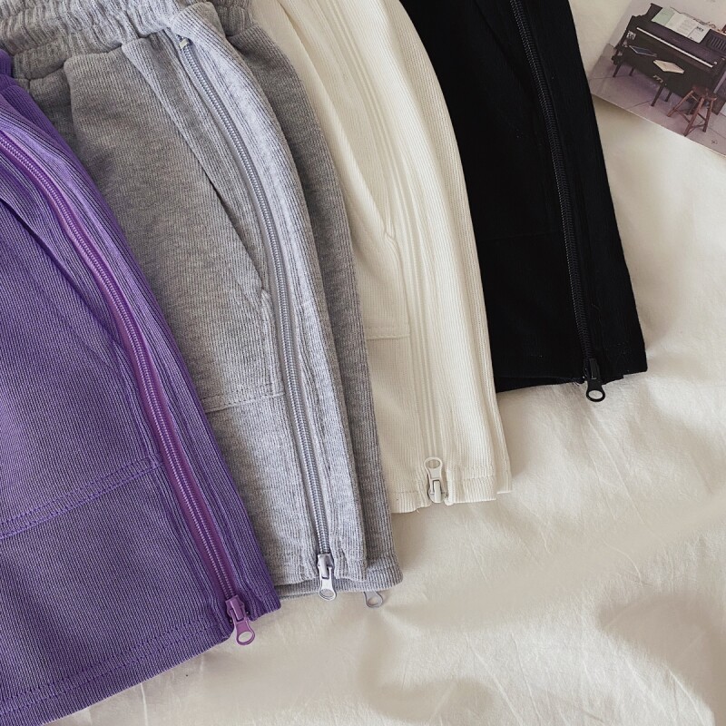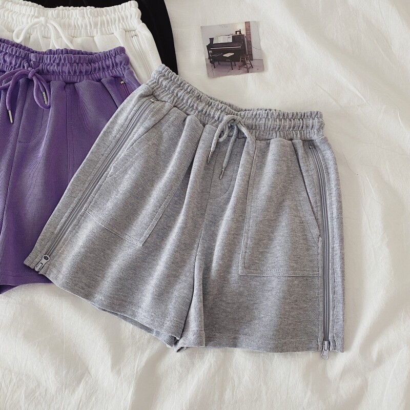 实拍现货 夏季新款韩版百搭短裤高腰运动裤哈伦裤拉链休闲裤女