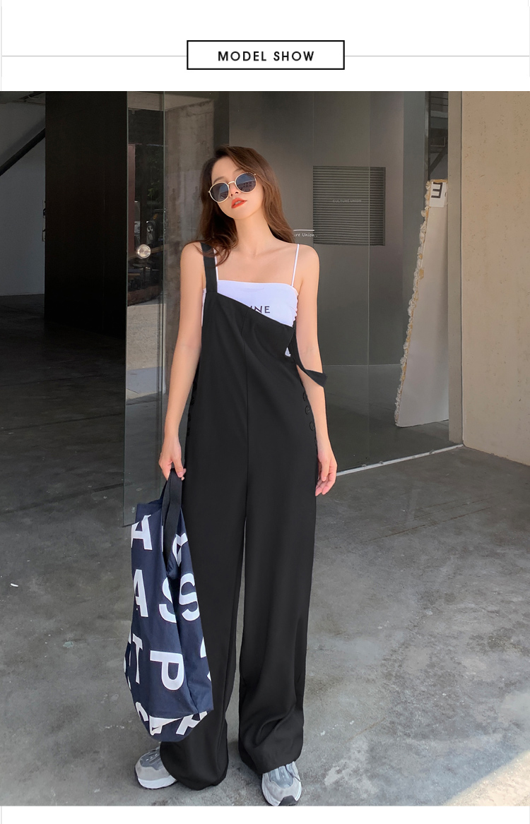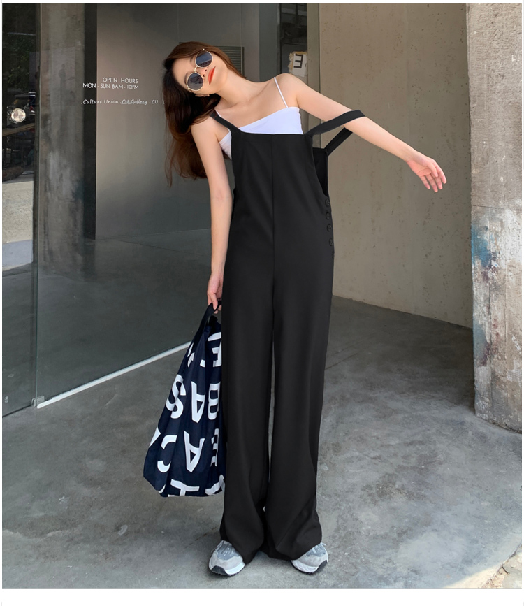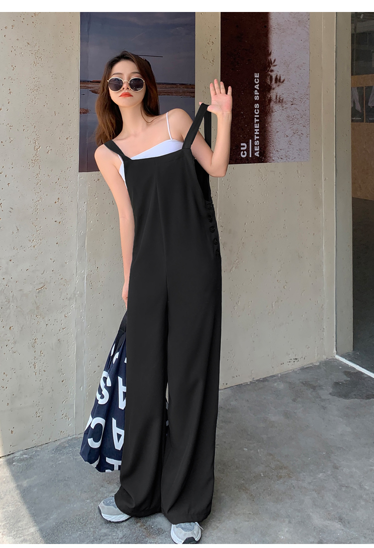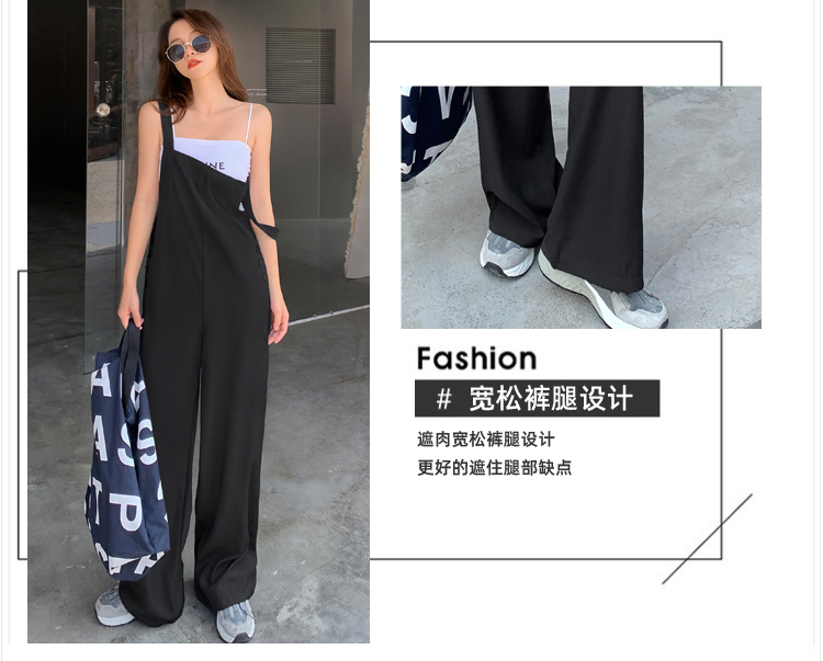 2021夏季新款韩版宽松休闲薄款连体拖地裤 减龄时尚显瘦百搭长裤