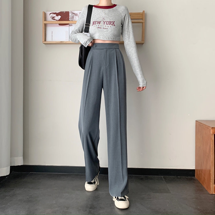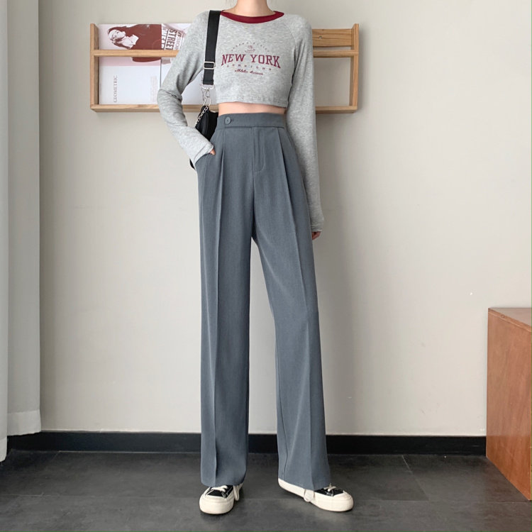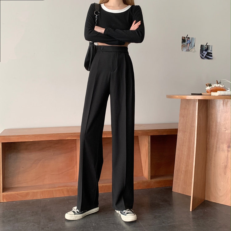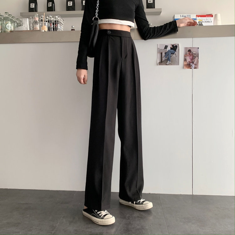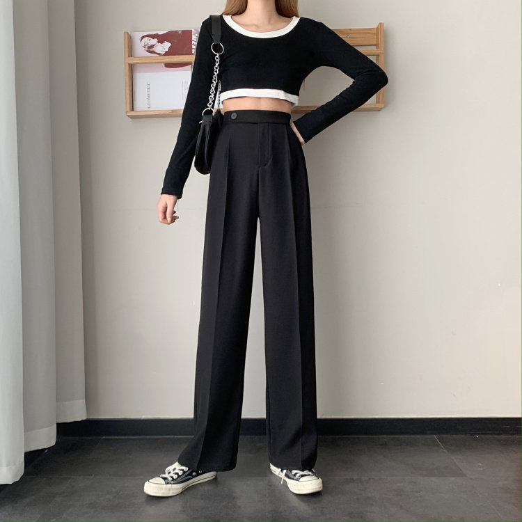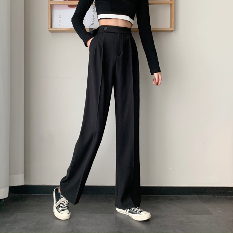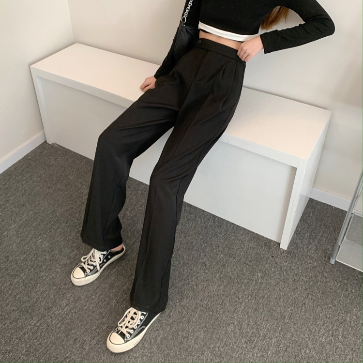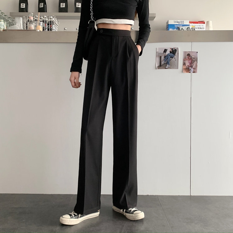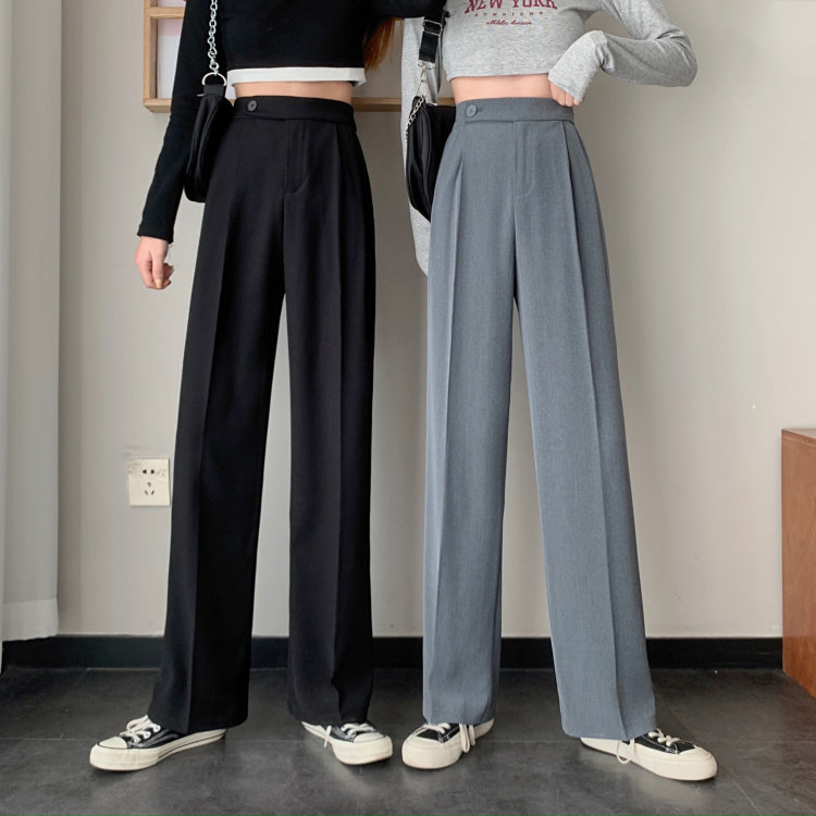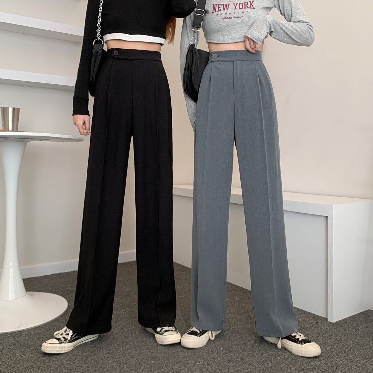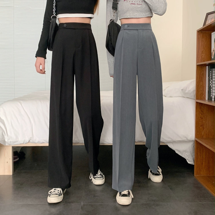 实拍 三标齐 春夏款韩版高腰垂感西装阔腿裤直筒宽松休闲长裤实价