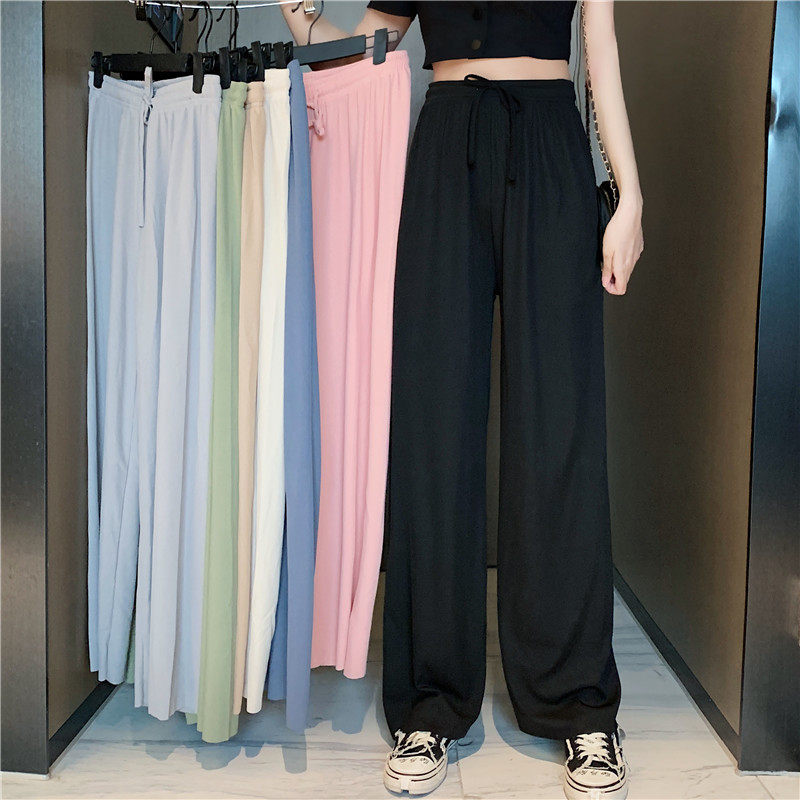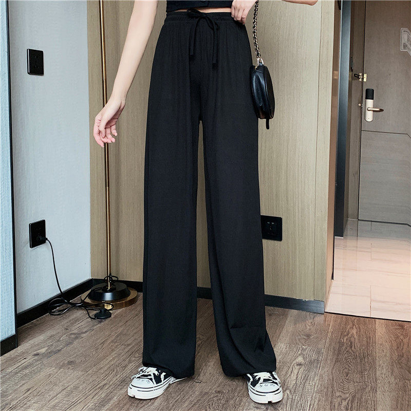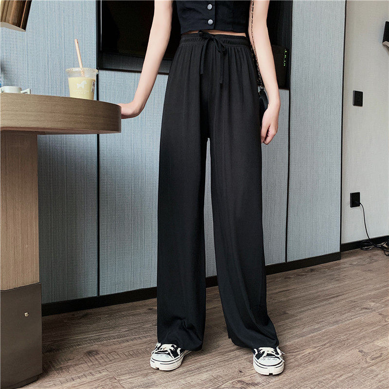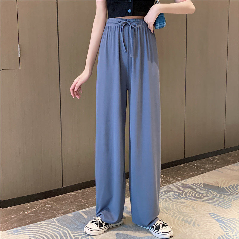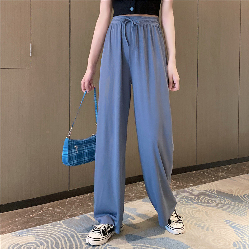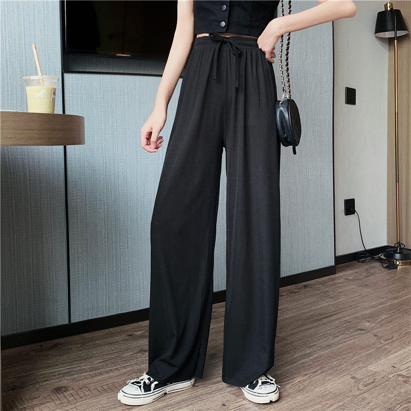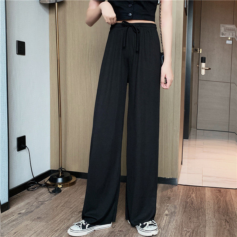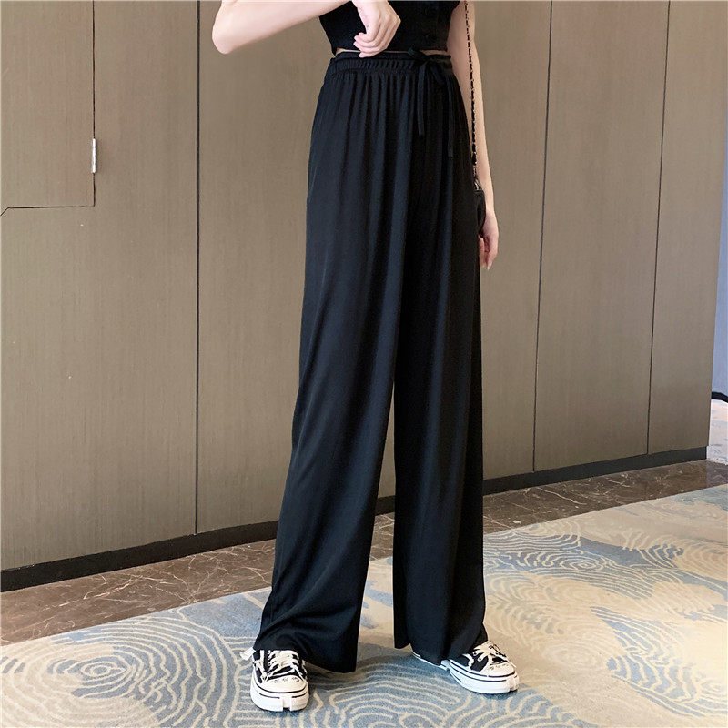 实拍实价 冰丝阔腿裤女春夏高腰垂感宽松拖地休闲裤子2021