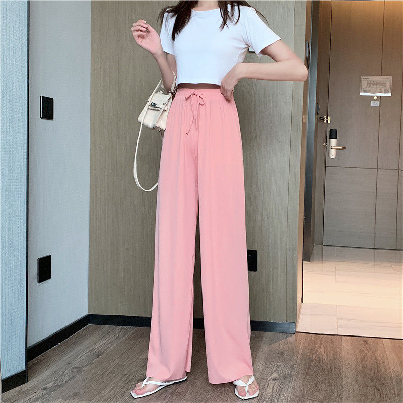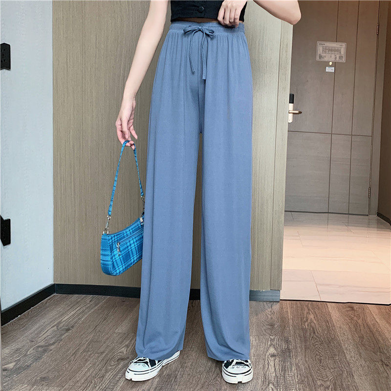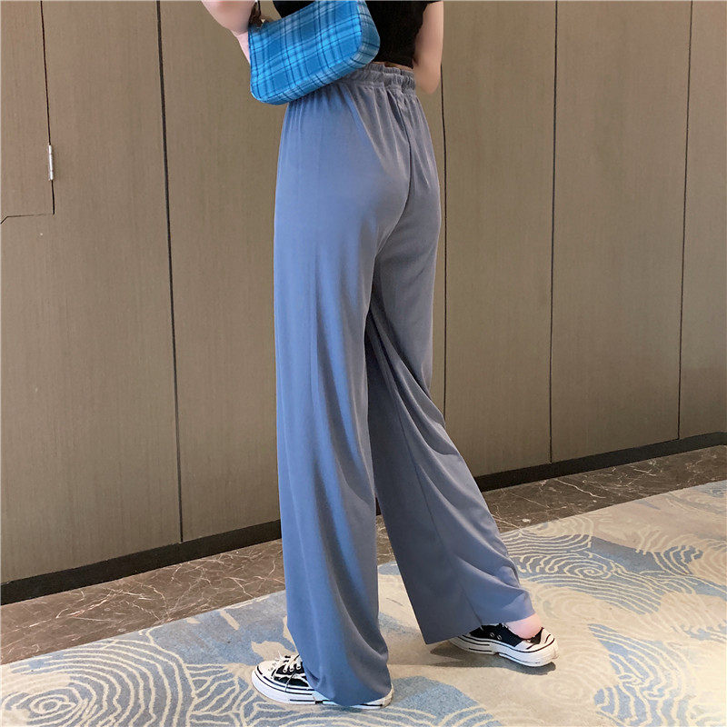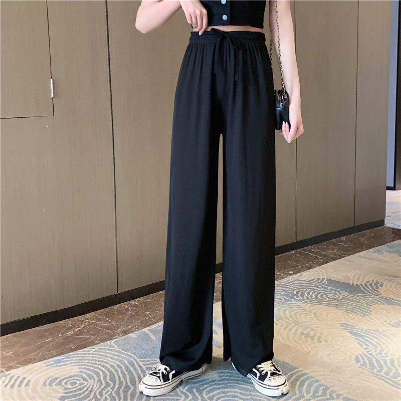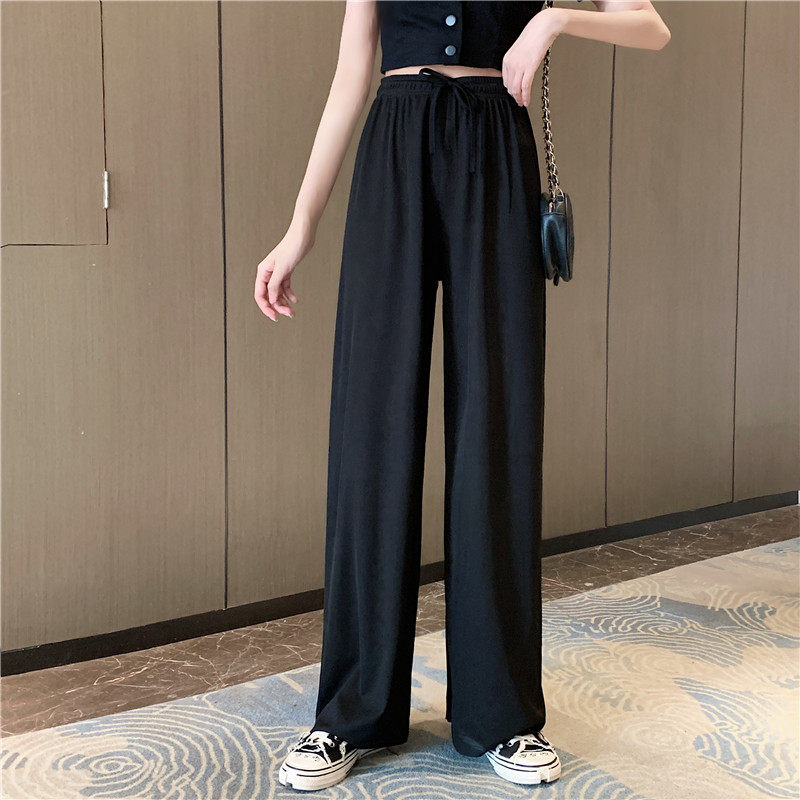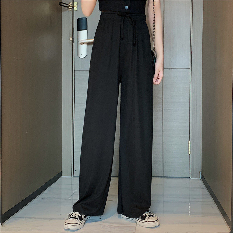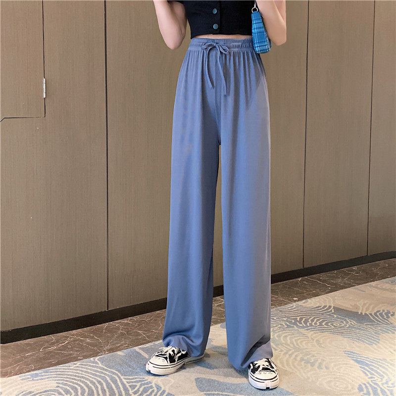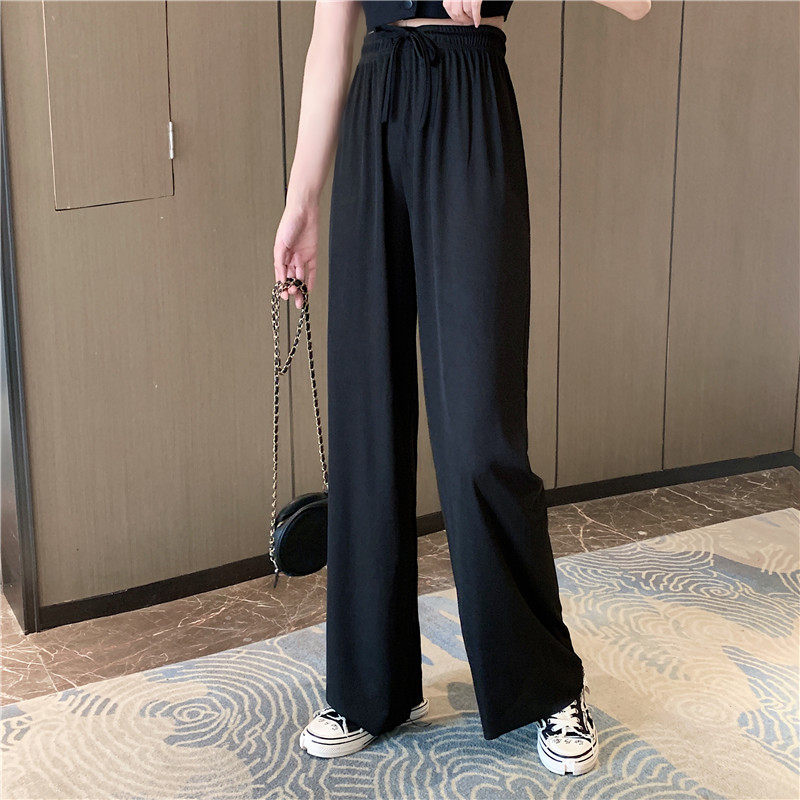 实拍实价 冰丝阔腿裤女春夏高腰垂感宽松拖地休闲裤子2021