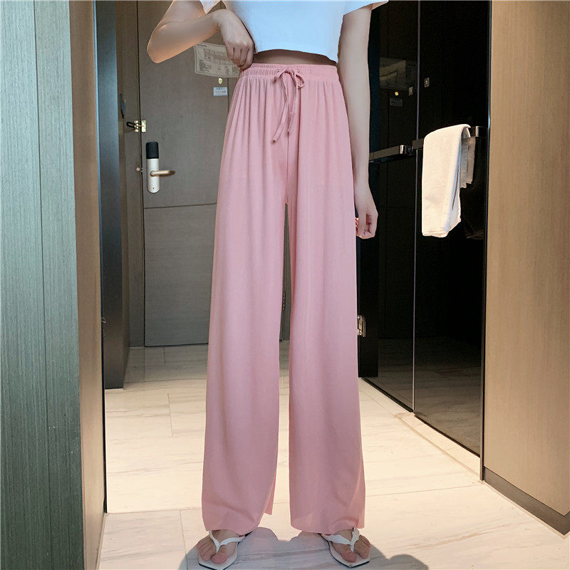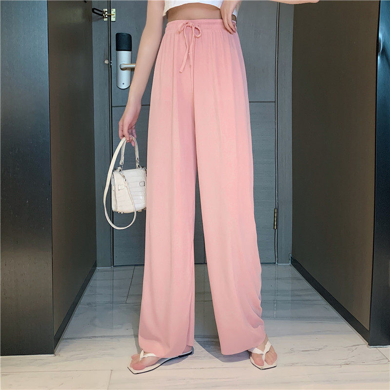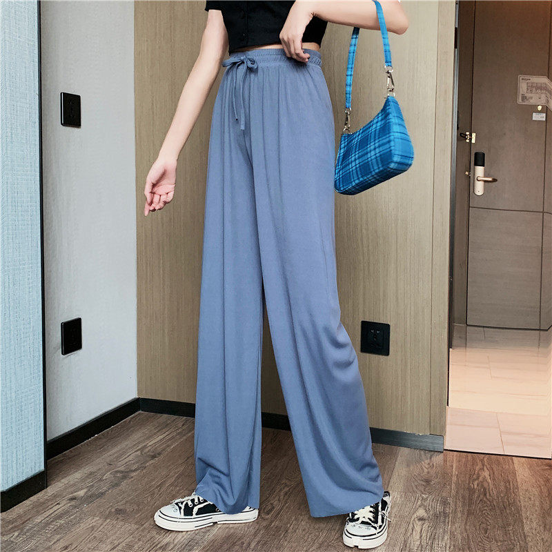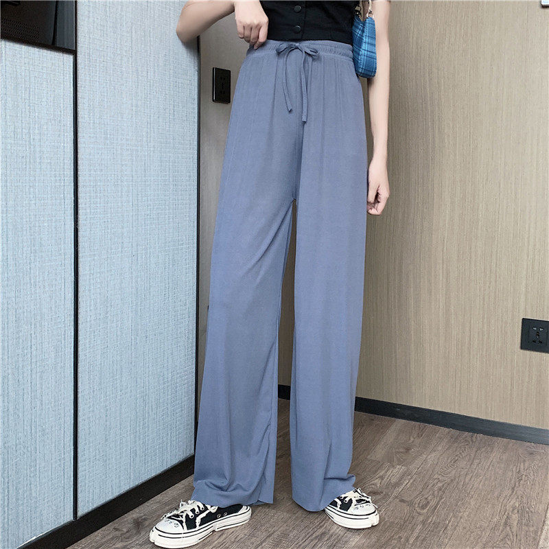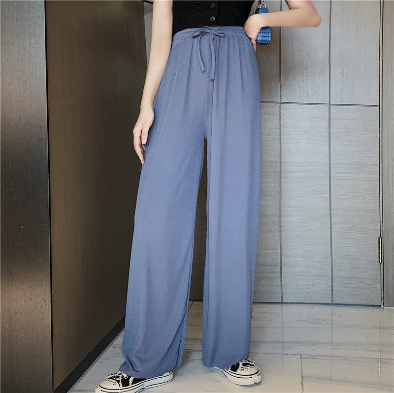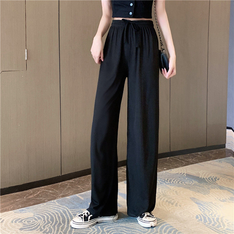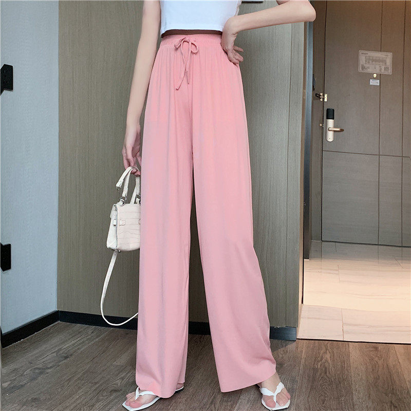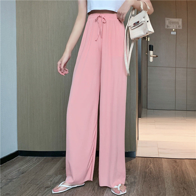 实拍实价 冰丝阔腿裤女春夏高腰垂感宽松拖地休闲裤子2021