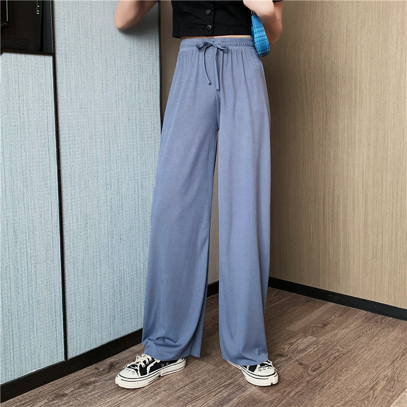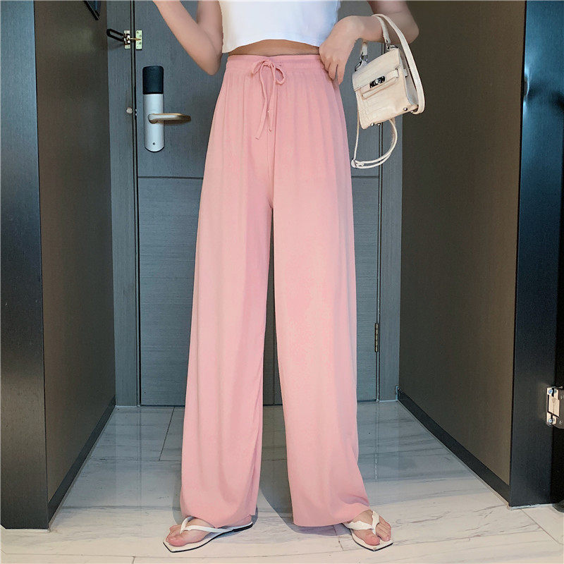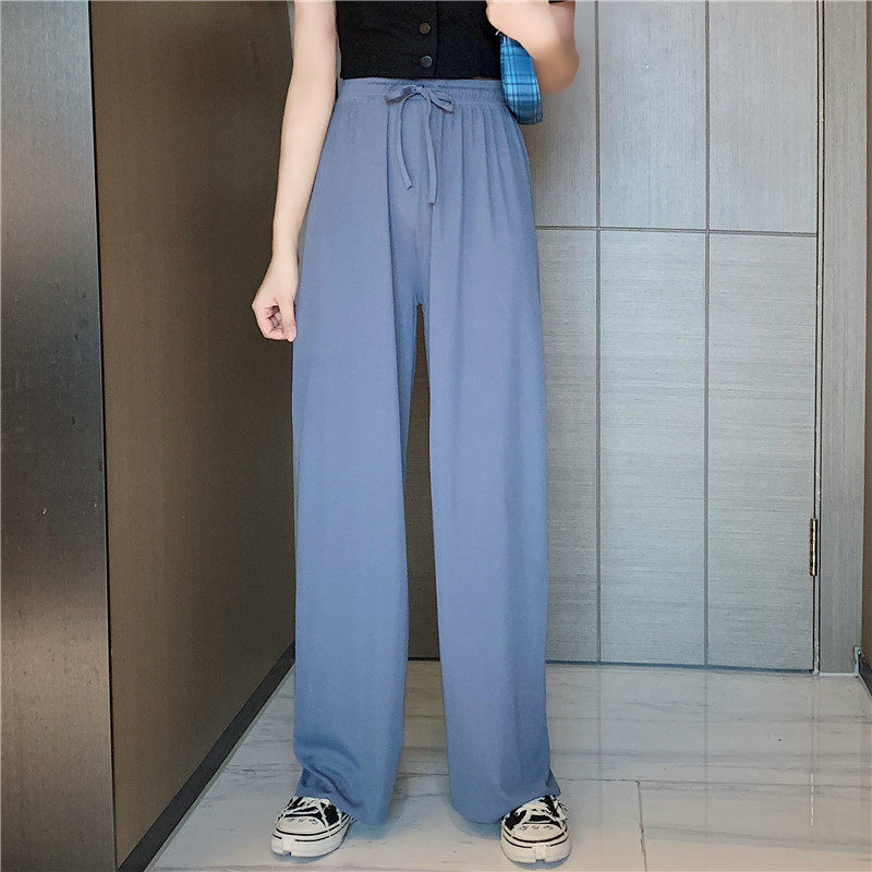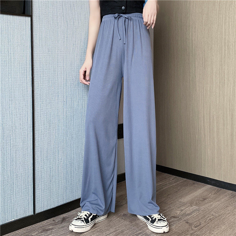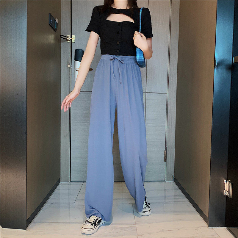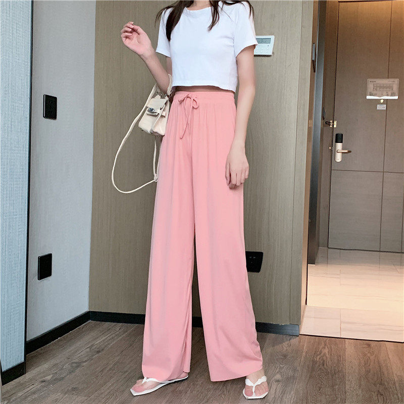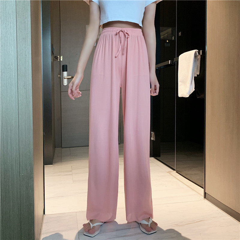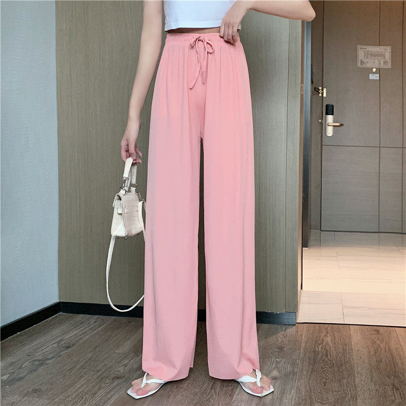 实拍实价 冰丝阔腿裤女春夏高腰垂感宽松拖地休闲裤子2021