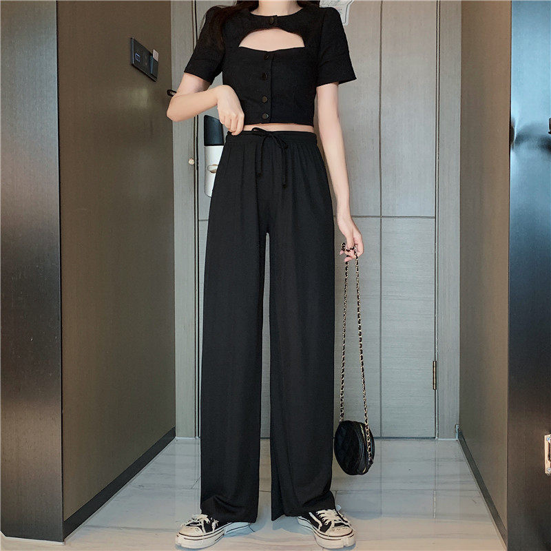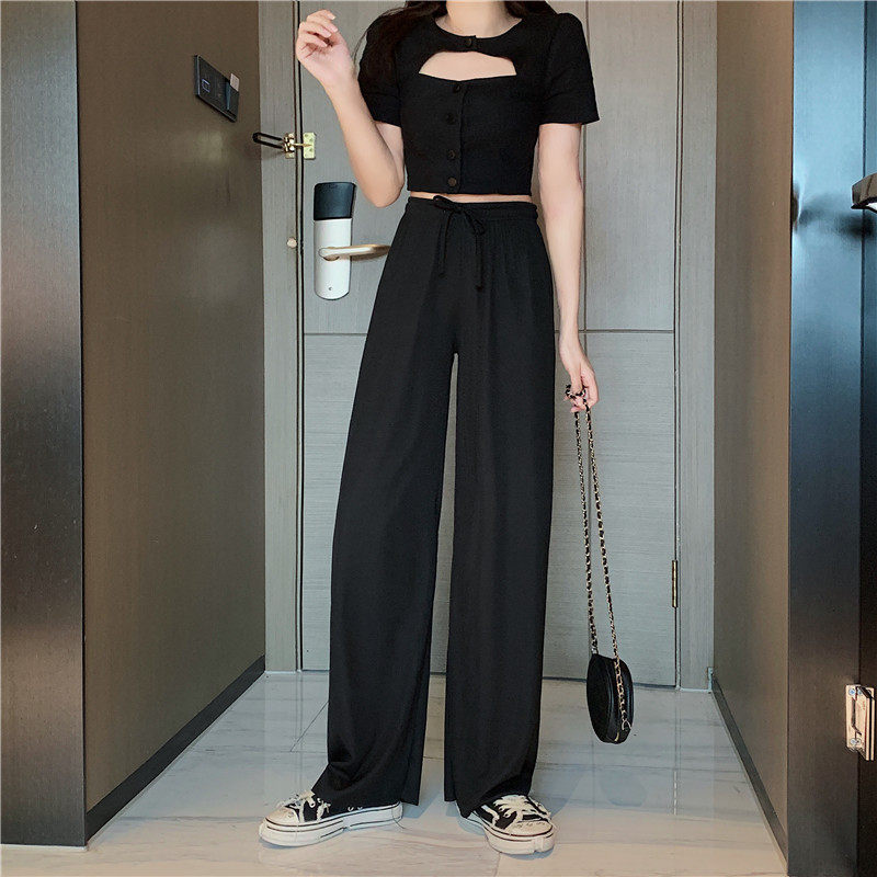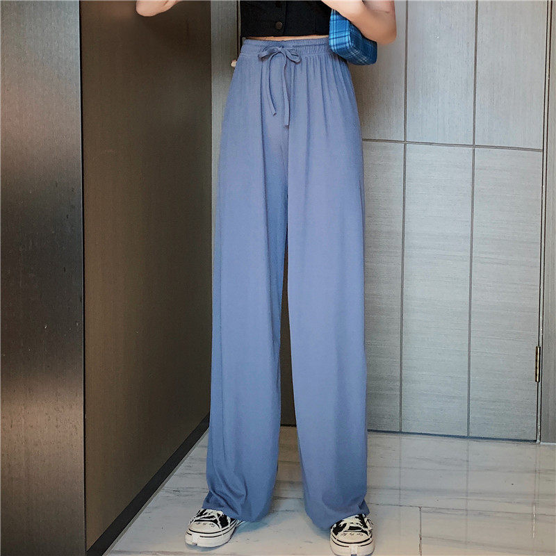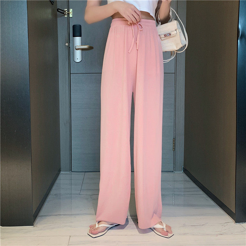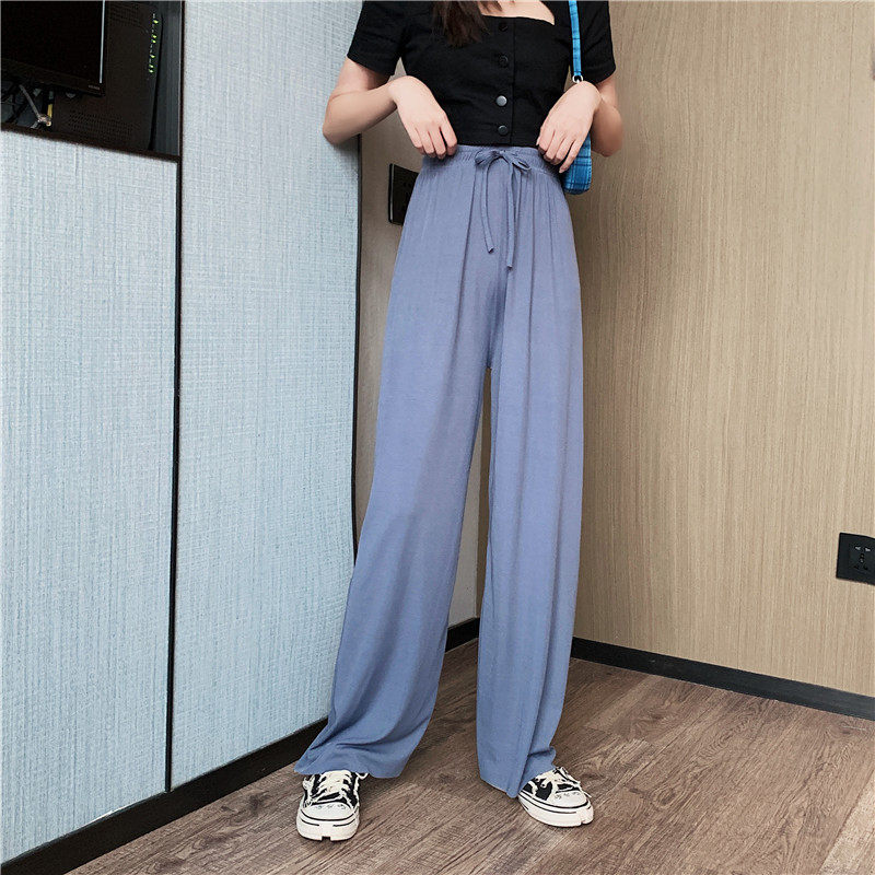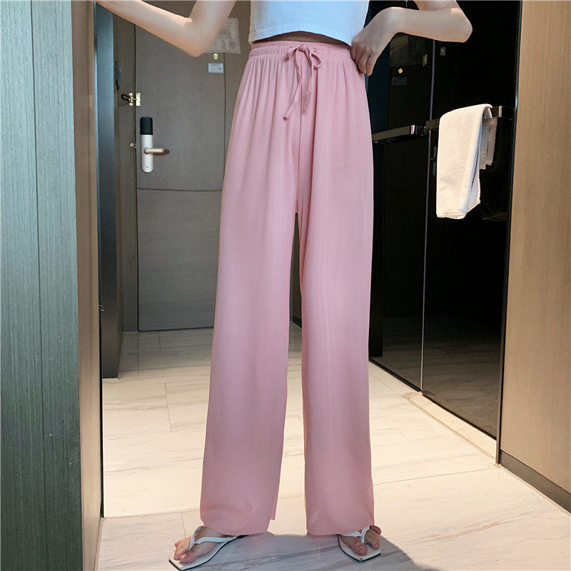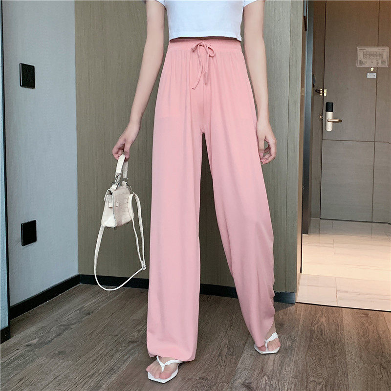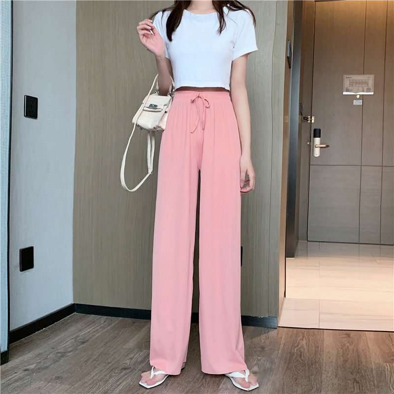 实拍实价 冰丝阔腿裤女春夏高腰垂感宽松拖地休闲裤子2021