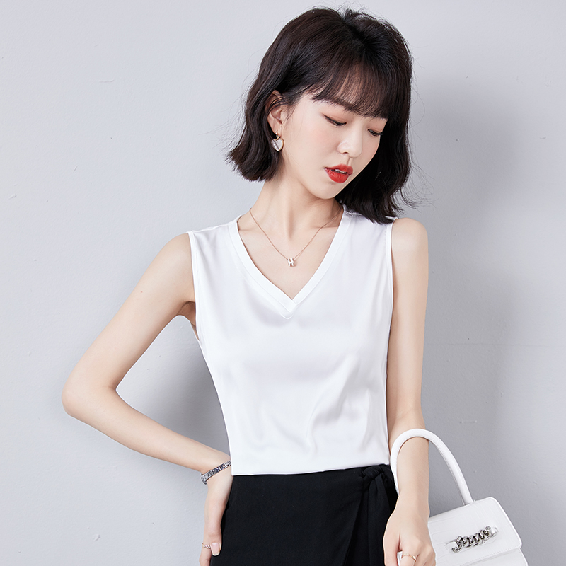 实拍夏装无袖上衣时尚纯色吊带V领背心西装内搭上衣小衫女