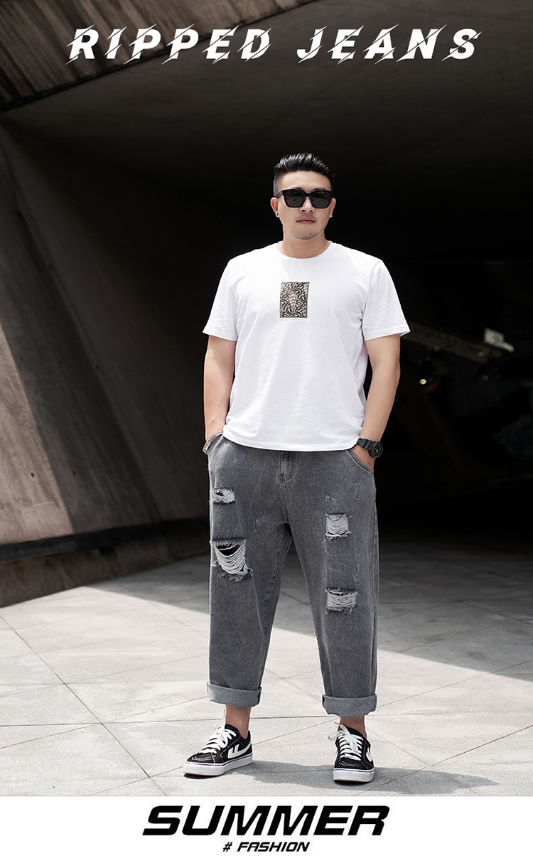 品牌:大码男装休闲裤子破洞耐磨老爹裤加肥加大直筒牛仔裤宽松阔腿潮裤