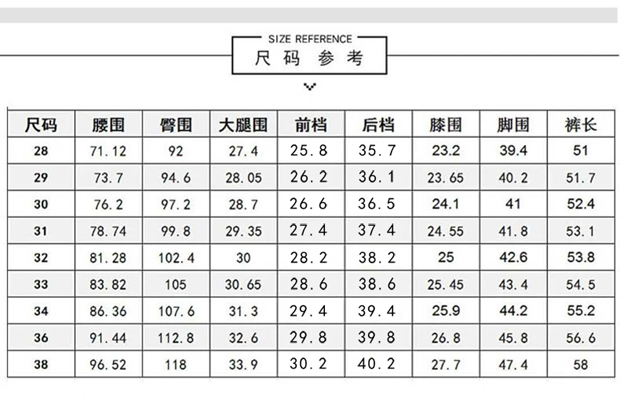 尺码:28 29 30 31 32 33 34 36 38