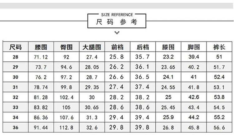 尺码:28 29 30 31 32 33 34 36