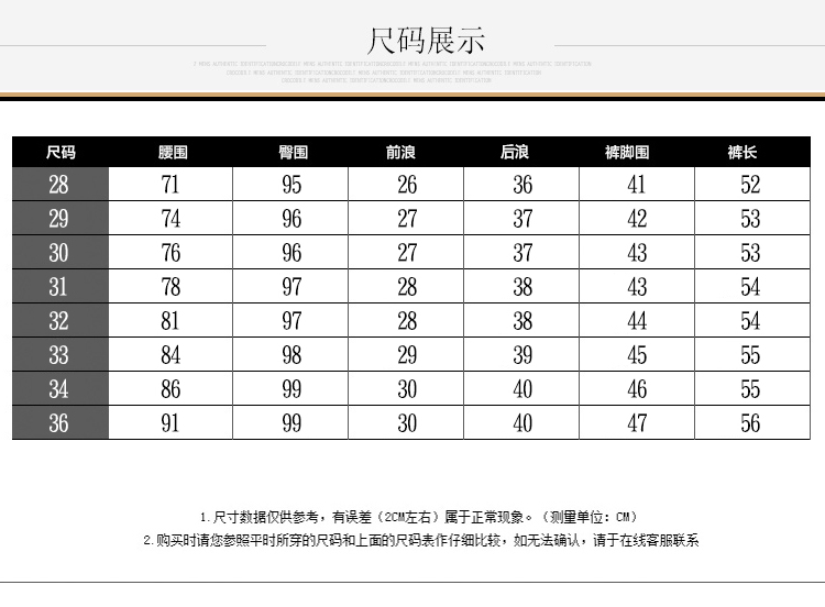 尺码:28 29 30 31 32 33 34 36