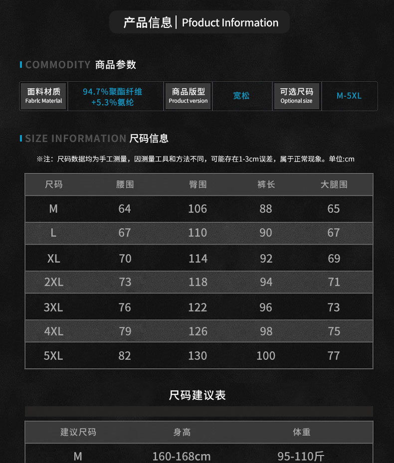 尺码:M L XL 2XL 3XL 4XL 5XL