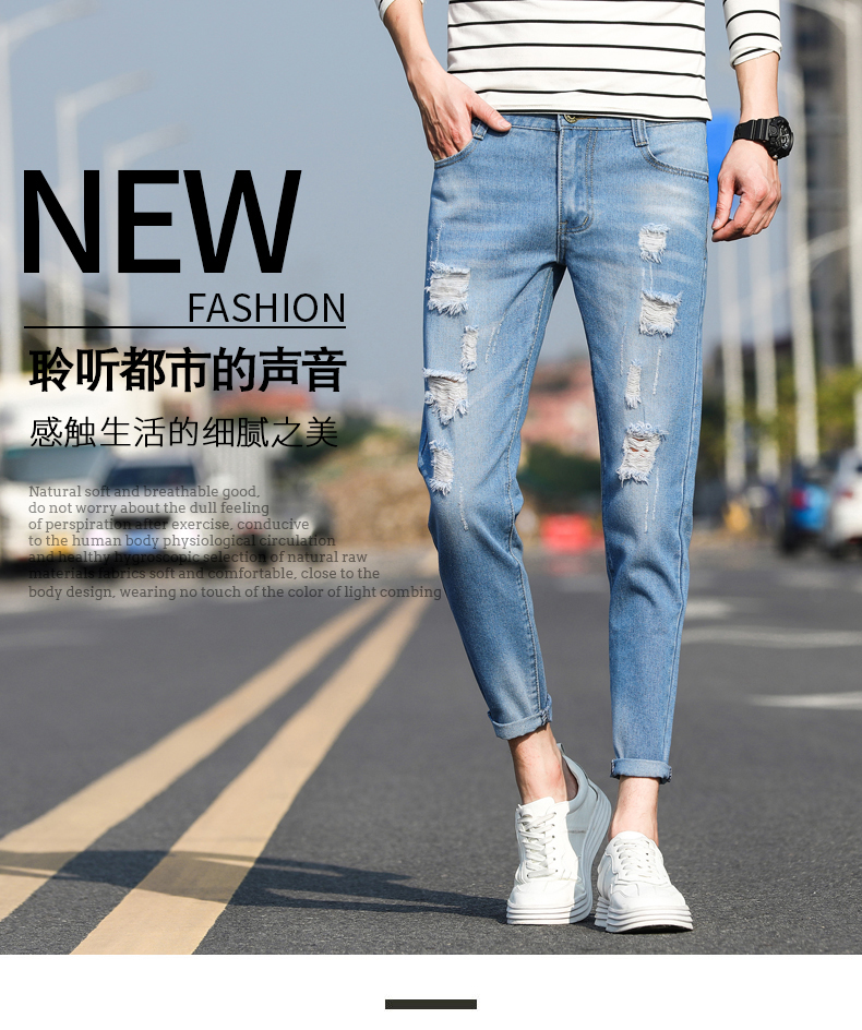 货号:T66破洞款小脚裤