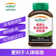 健美生Jamieson深海鱼油软胶囊60粒omega3中老年成人dha欧米伽3 1瓶装