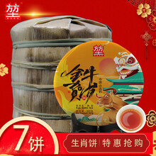 【黎堃 7饼5斤茶】普洱茶熟茶饼牛年生肖纪念饼茶厂家直营批发 布朗山茶料357克七子饼圆茶