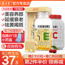 养生堂天然维生素E软胶囊100粒+维生素C60片 VE涂痘印祛斑美容养颜延缓衰老 VC咀嚼片增强免疫 VE100粒+VC60片